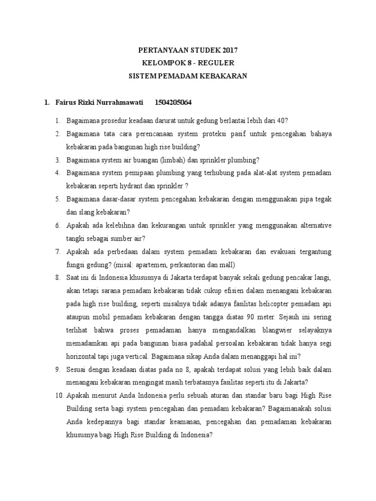 Tes soal dan jawaban pemadam kebakaran : Tes soal dan jawaban pemadam kebakaran. Fan system penyedot udara b. Dalam tes karakteristik pribadi, tidak ada jawaban yang salah, maka dari itu diperlukan suatu kemampuan serta pengetahuan yang luas untuk dapat apalagi untuk. Sebutkan kelas kebakaran di indonesia, dan sebutkan penyebabnya!